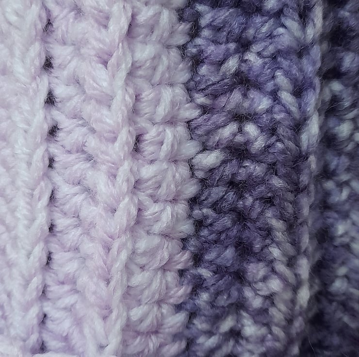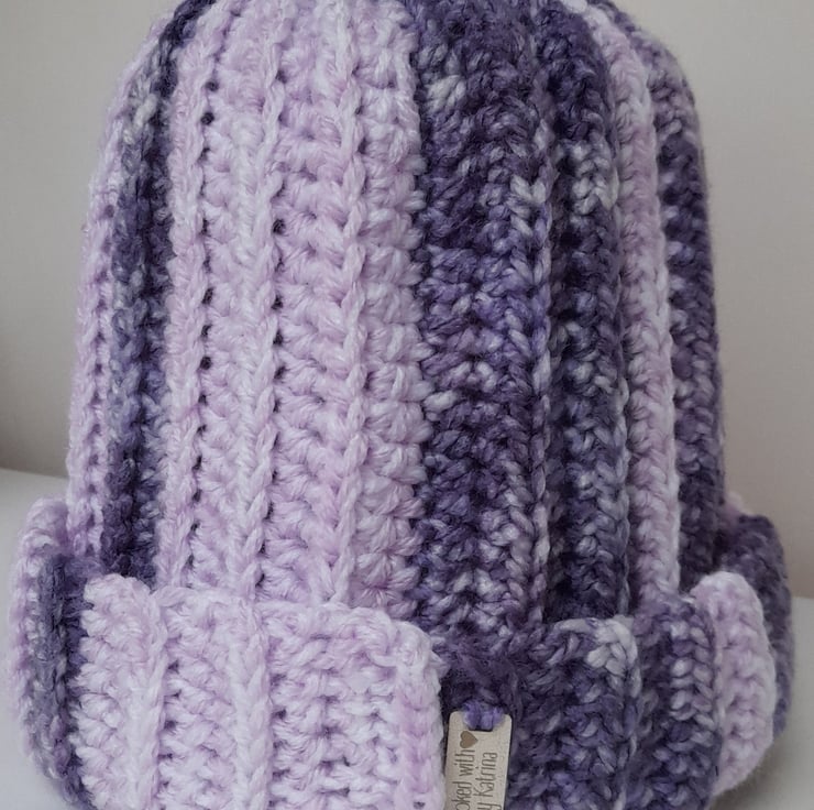 In lovely shades of purple, soft and warm for Winter...matching cowl will finish off your outfit!