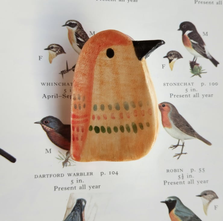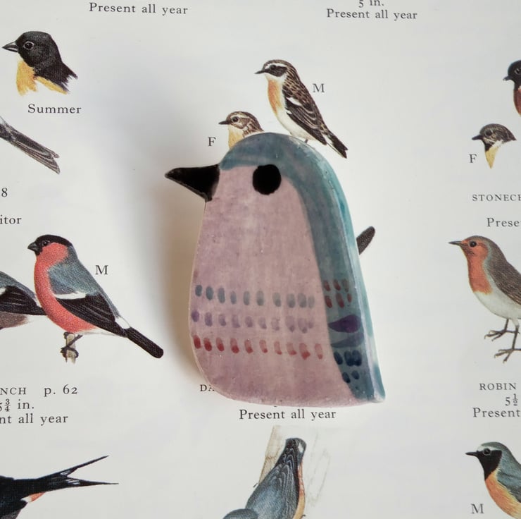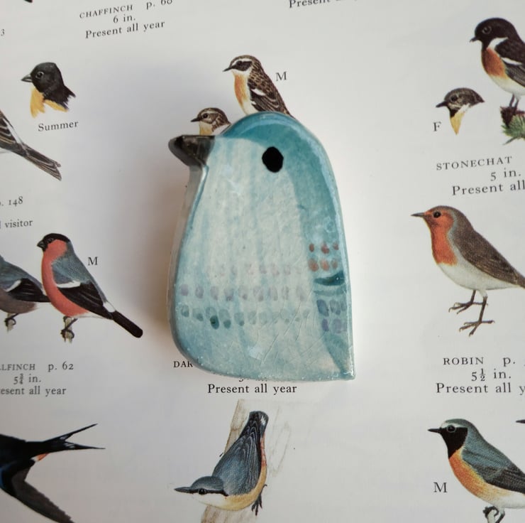 They are made with a white earthernware clay, and the glazes I use can be mixed together almost like watercolours, so I can make many variations of colours. They look different before they go in the kiln, and are fired around 1000 degrees. Each one is unique due to my making method.
