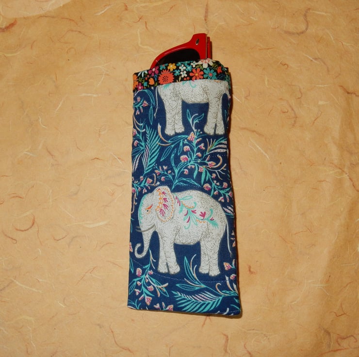 This is an elegant case for your glasses or sunglasses, featuring elephants on a navy leaf and flower print background. It is made from a cotton print fabric with a toning floral lining. It also has a layer of wadding for protection. This is a slip in style glasses case, if you require a case which fastens please view my other listings.