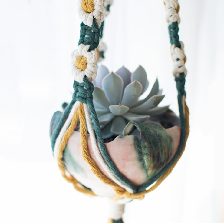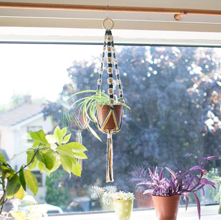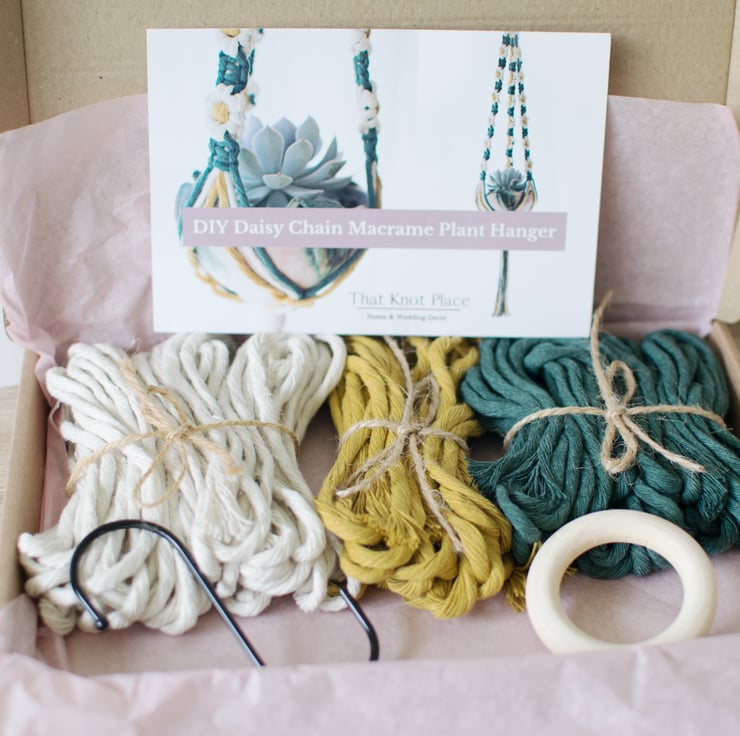 Treat yourself to a therapeutic afternoon whilst learning a new skill with this beautiful daisy chain macrame plant hanger kit.