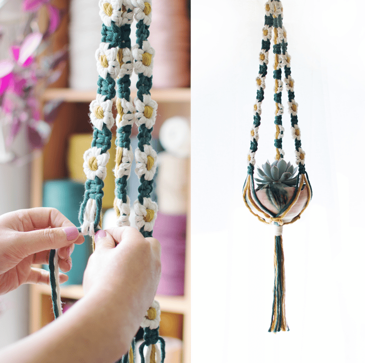 I wanted to try something different, your not so typical macrame plant hanger design. I love the slight complexity of the pattern that needed to be shared. The flower design really adds texture, colour and vibrancy to any space.