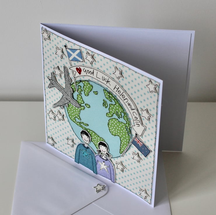 The card stock is 300gsm Classic White, measuring 18 x 18 cm, presented with a matching envelope (100gsm) and wrapped in tissue with a sticker to close.