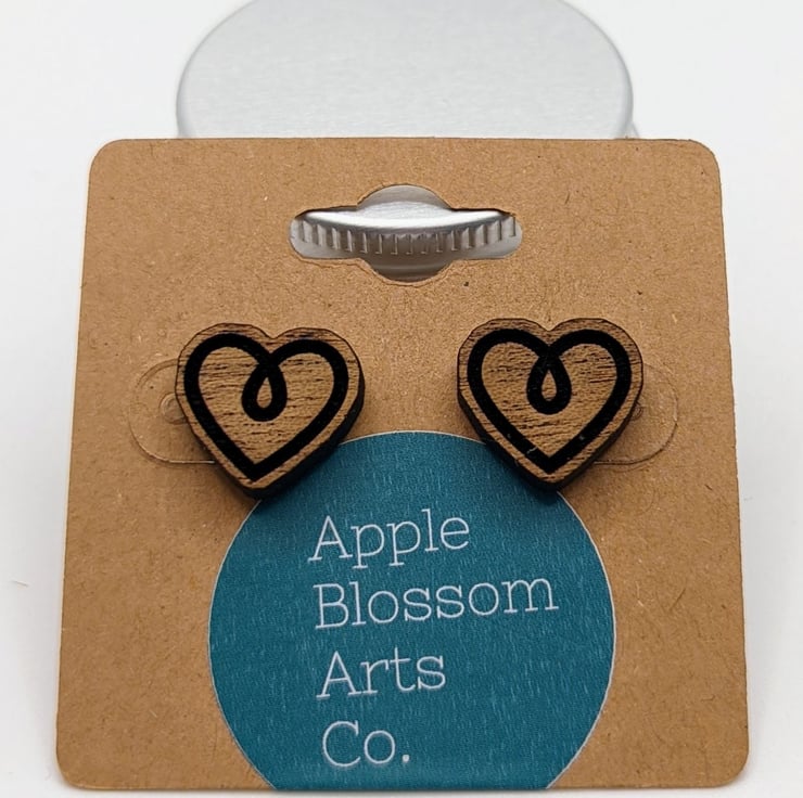 Stud earrings laser cut from 3mm walnut. Measuring 14mm width and 15mm height, backed with hypoallergenic stainless steel posts and butterfly backs.