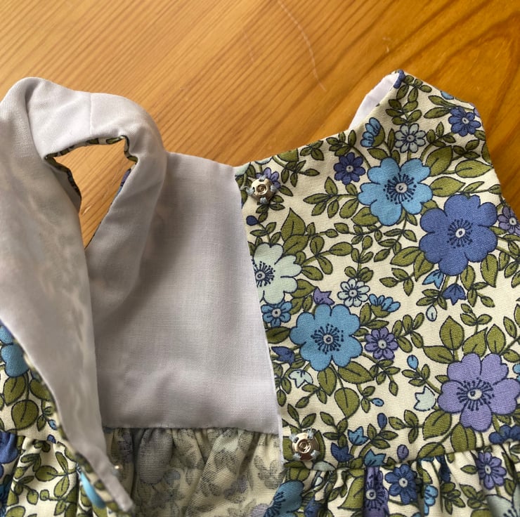 I have closed the dress with dolly size buttons and snap fasteners. Suitable for children over 3 years. Small parts.