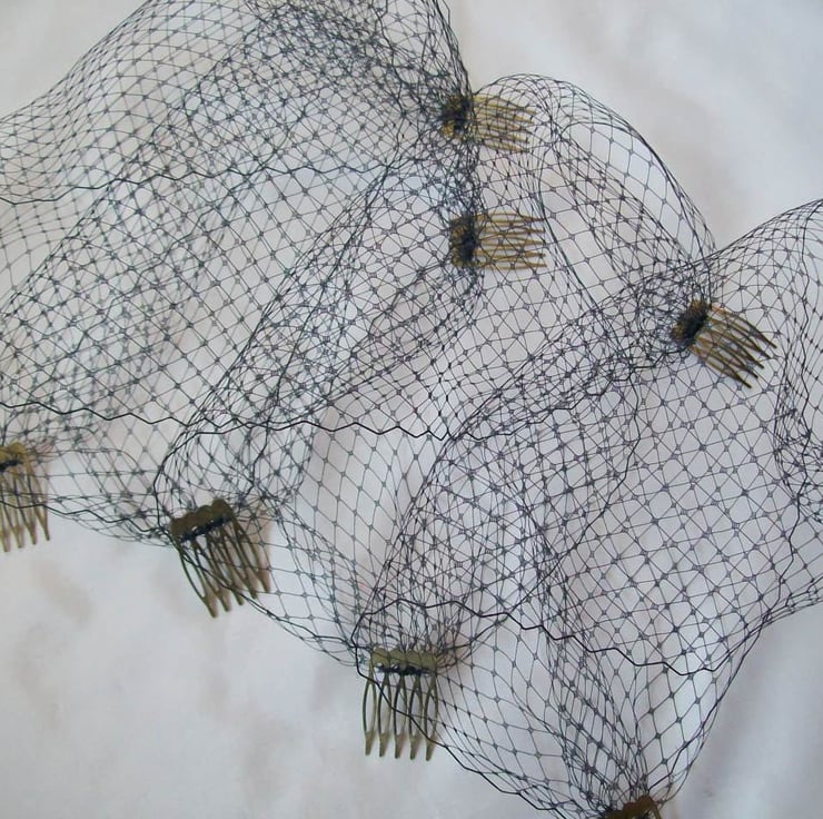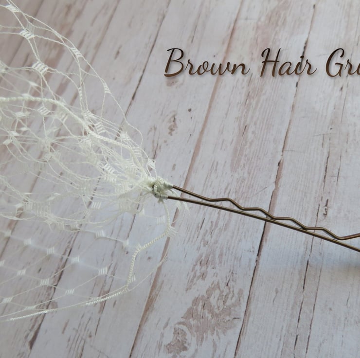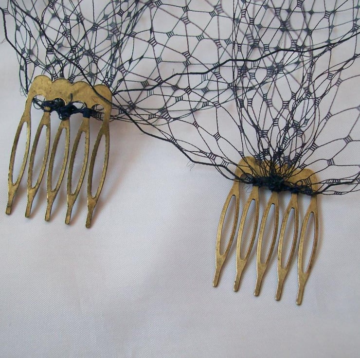 The ends of the veil are hand sewn onto two small silver or antique brass metal combs, or hair grips, which can be positioned at various points on the head.