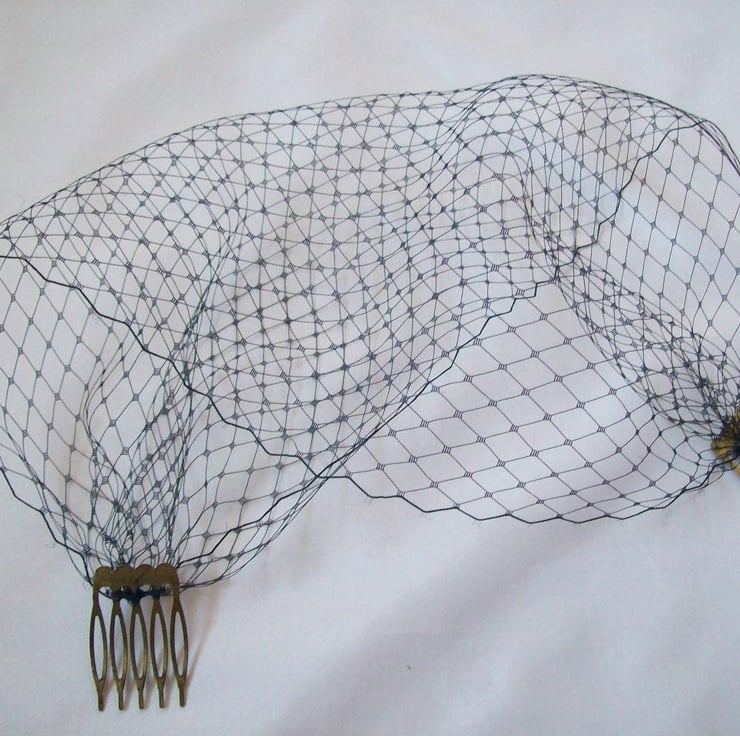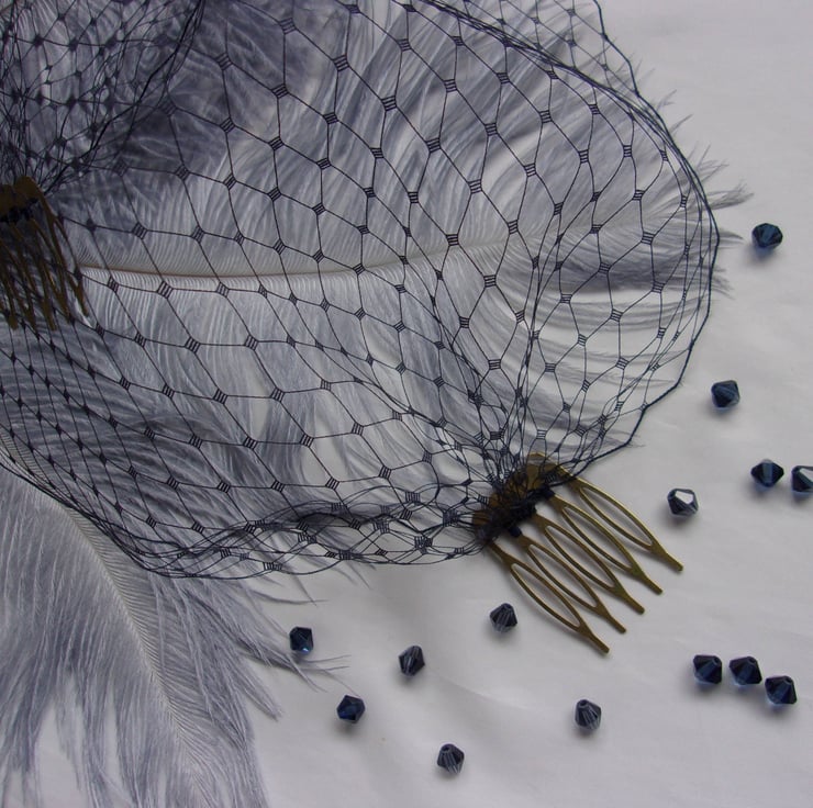 This is a navy blue bandeau birdcage style veil made from delicate fine classic veiling.