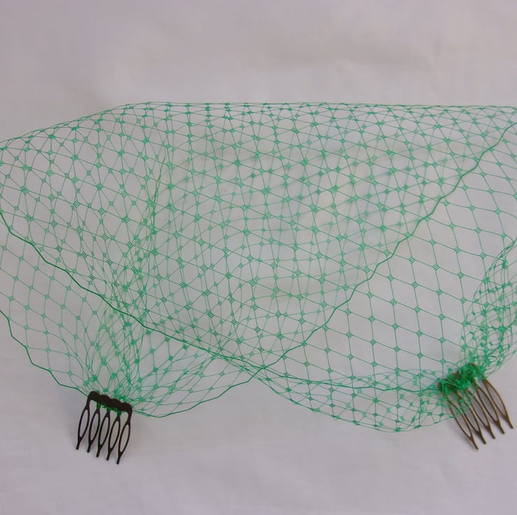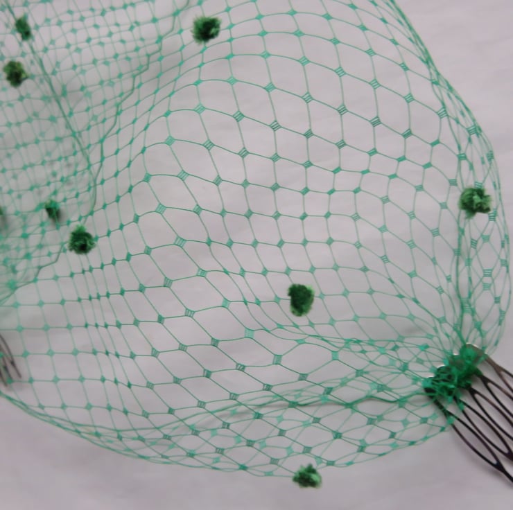 This is a bandeau birdcage style veil made from emerald green classic millinery veiling.