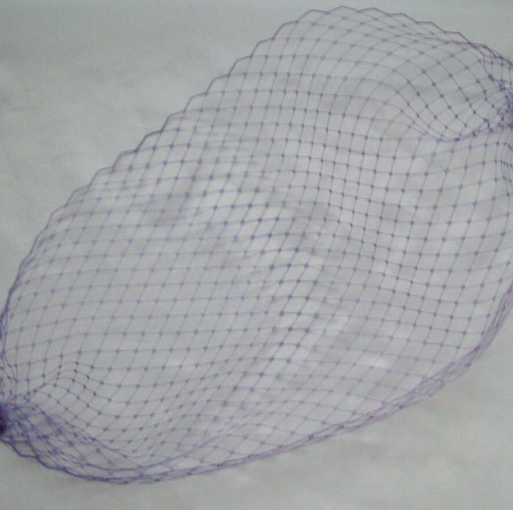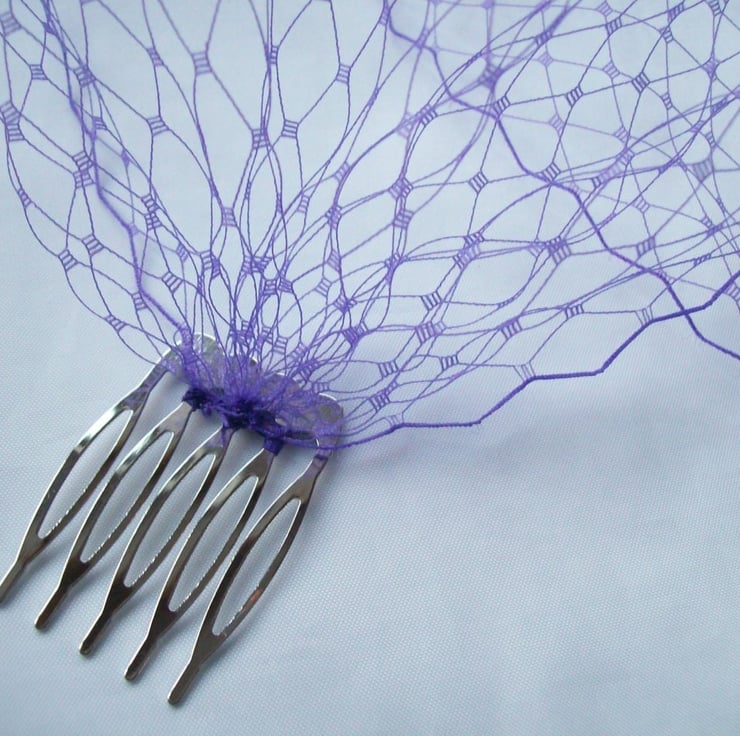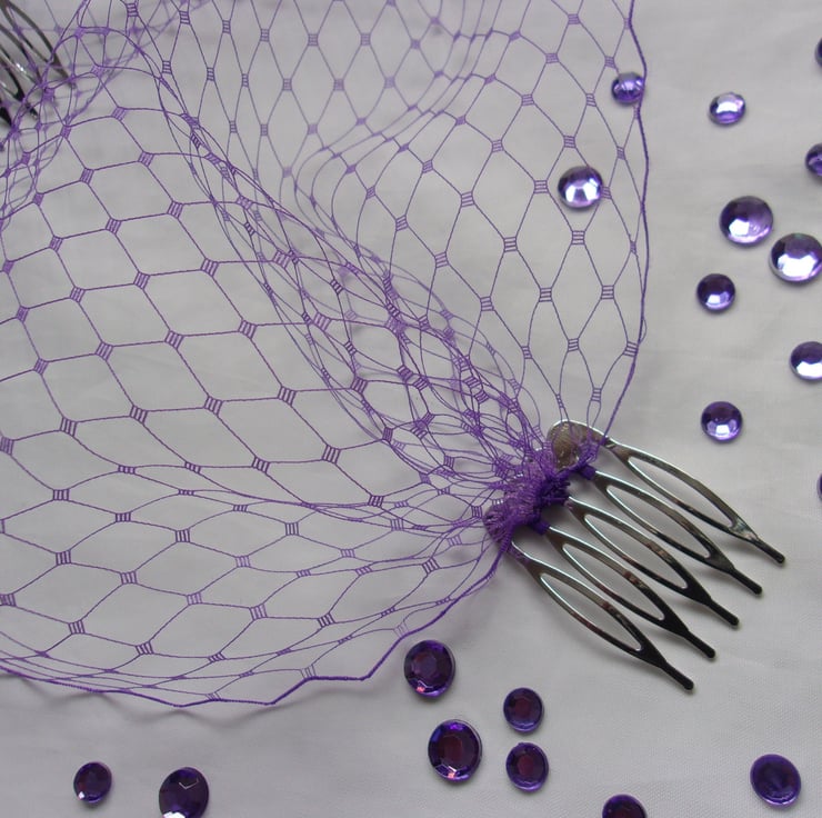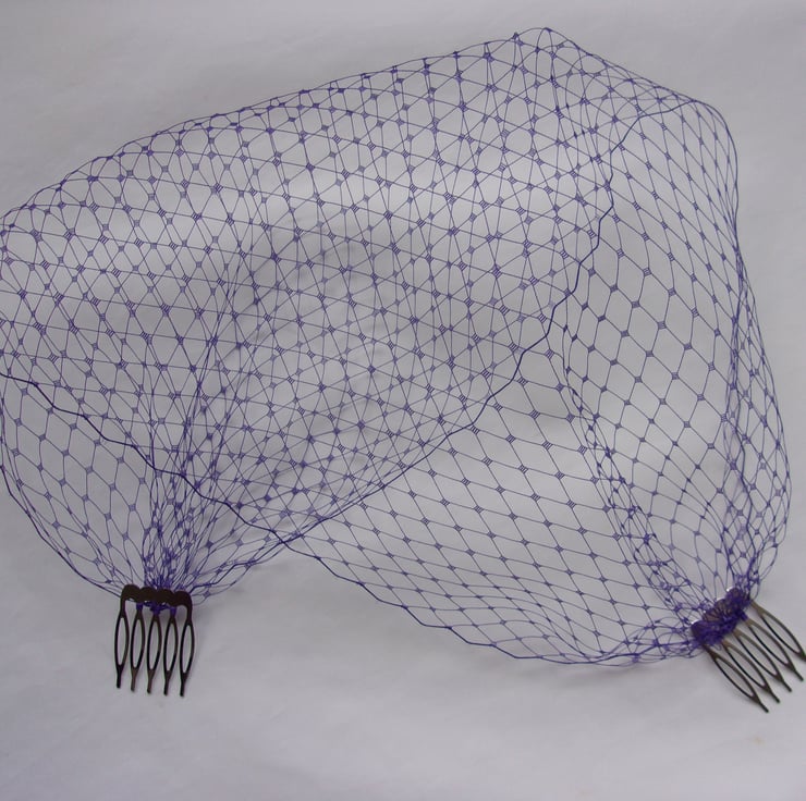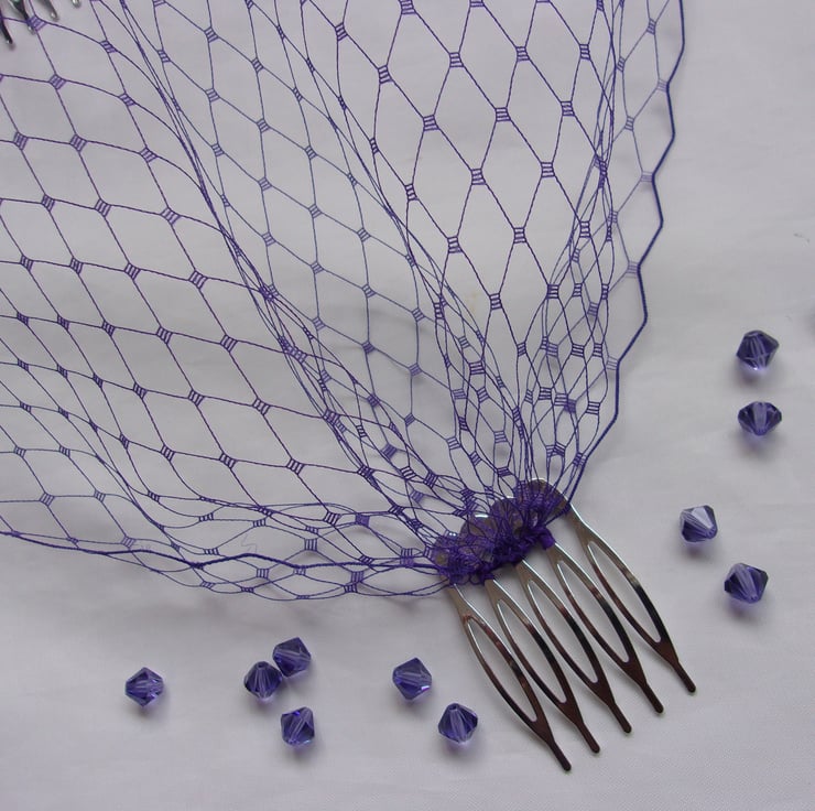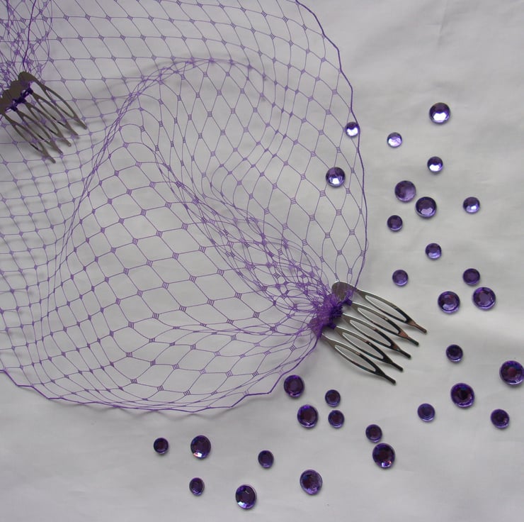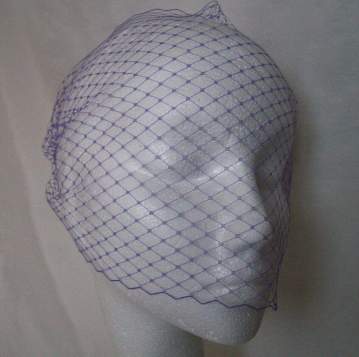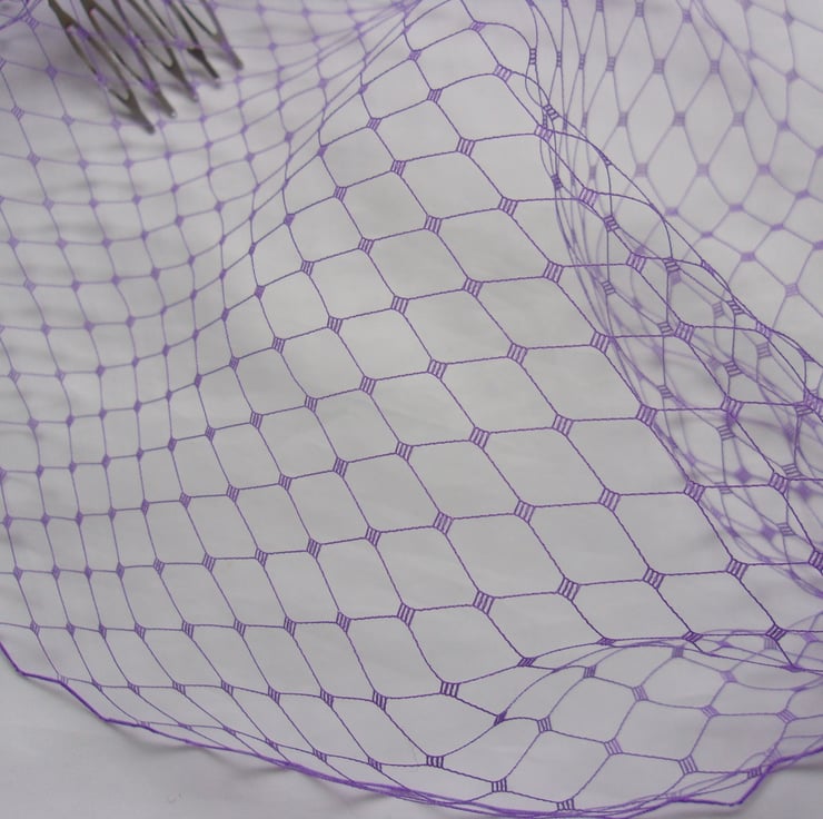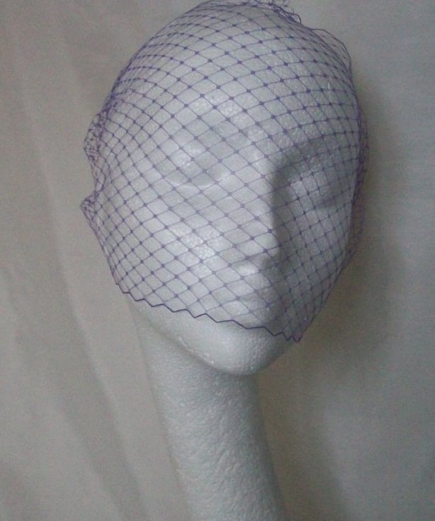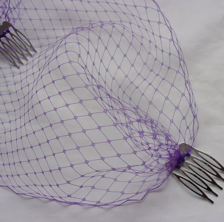 This is a bandeau birdcage style veil made from Purple classic veiling.