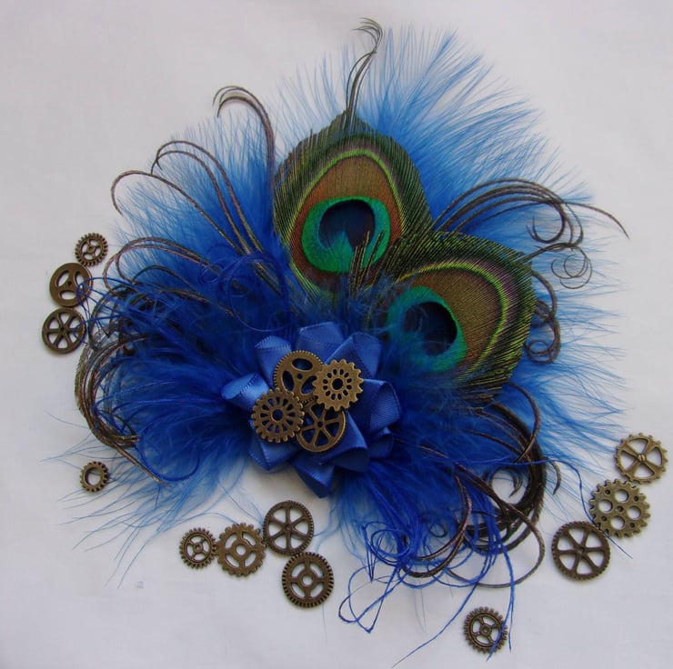 This 'Royal Blue Steampunk Little Gem Clip' mini fascinator is made to order only, please allow up to 7 days for making plus delivery, materials are subject to availability.