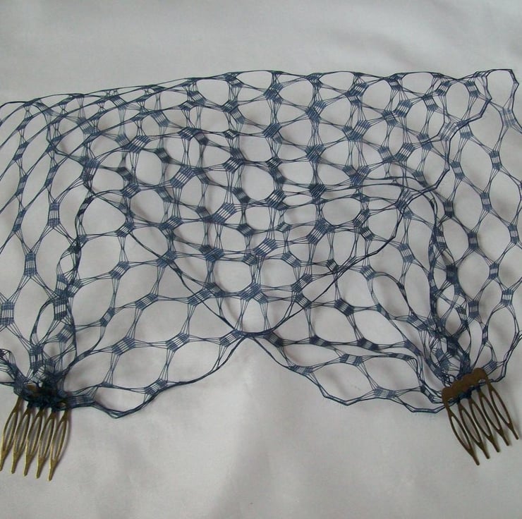 This is a bandeau birdcage style veil made from a french navy soft waffle weave millinery veiling.