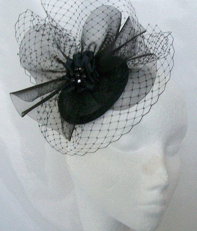This 'Black Elizabeth ' fascinator mini hat made to order only, please allow up to 10 days for making PLUS shipping, materials are subject to availability.