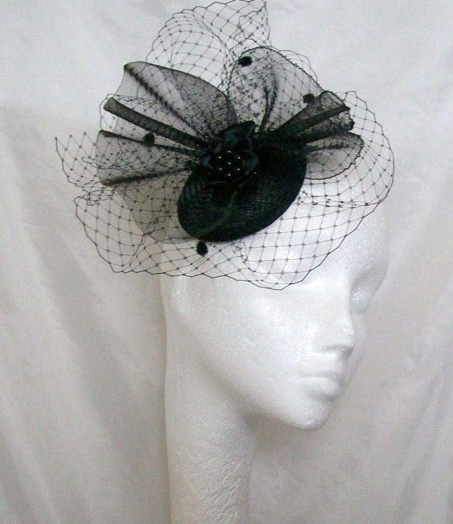 This is a beautiful and elegant lightweight cocktail fascinator hat in all black.