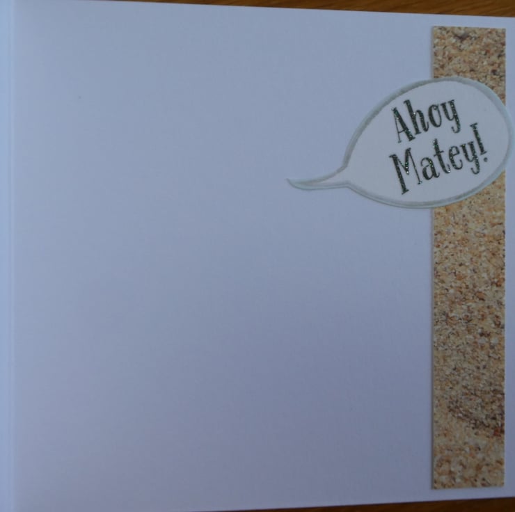 Inside the card is a strip of matching sand design card with the message Ahoy Matey.