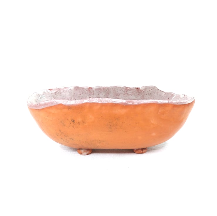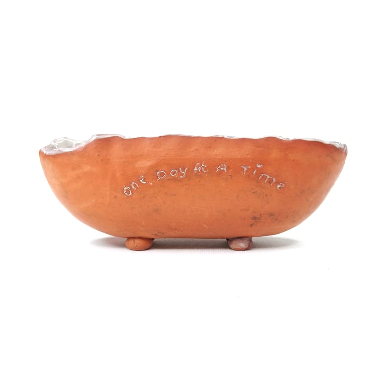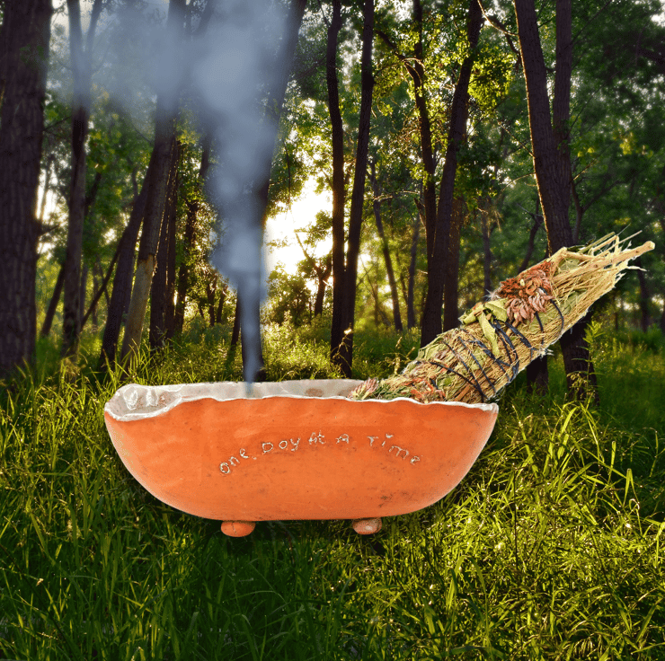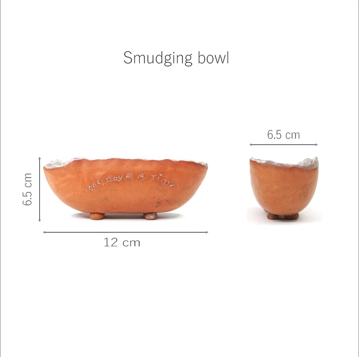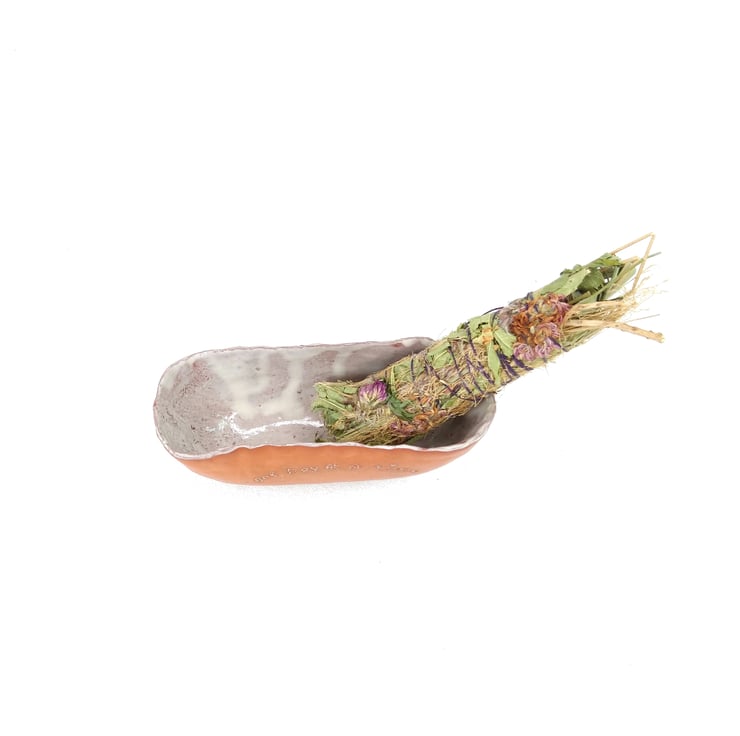 Handmade terracotta smudging bowl with a white pottery glaze finish. Made in England by artist ieva Alksne., The glaze inside of the bowl is food-safe!