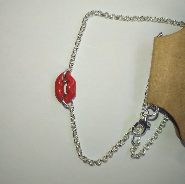 Silver plated mini belcher 16 inches with red lips