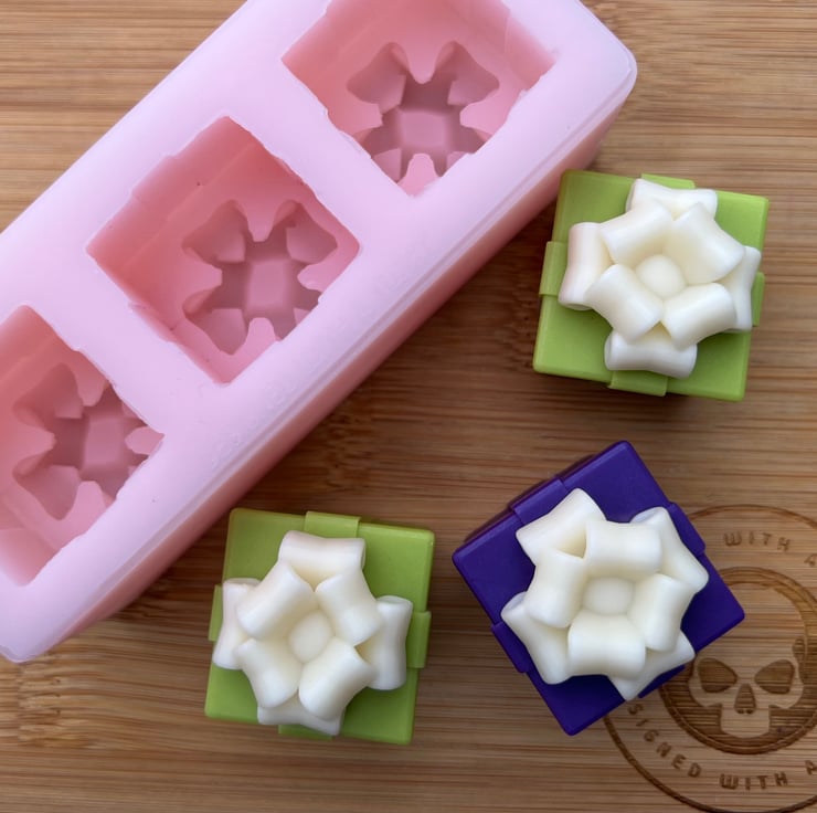 We use high quality platinum cure silicone that is food safe and can handle up to 230C (440F). We also de-gas our silicone before pouring the molds meaning they are great for use with wax, soap, resin, jesmonite, chocolate and for baking.