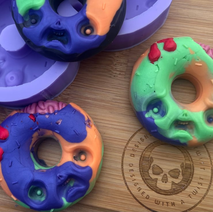 We use high quality platinum cure silicone that is food safe and can handle up to 230C (440F). We also de-gas our silicone before pouring the molds meaning they are great for use with wax, soap, resin, jesmonite, chocolate and for baking.