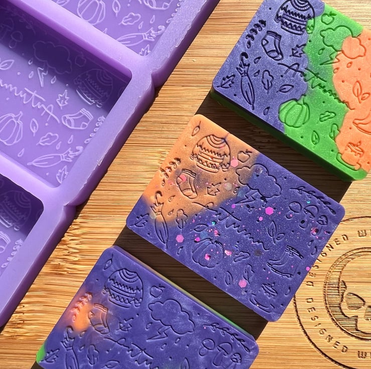 We use high quality platinum cure silicone that is food safe and can handle up to 230C (440F). We also de-gas our silicone before pouring the molds meaning they are great for use with wax, soap, resin, jesmonite, chocolate and for baking.