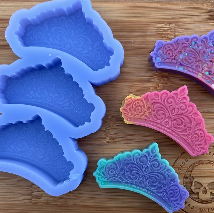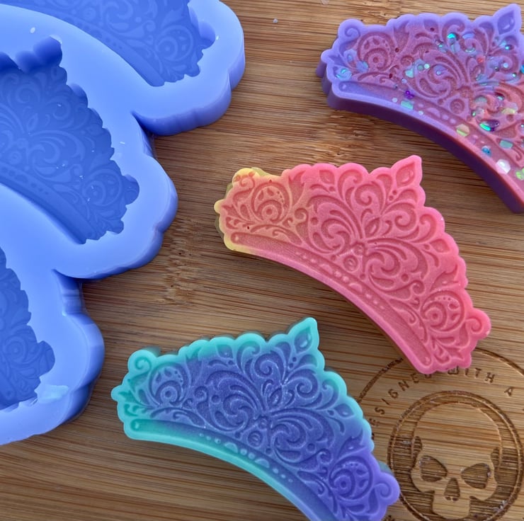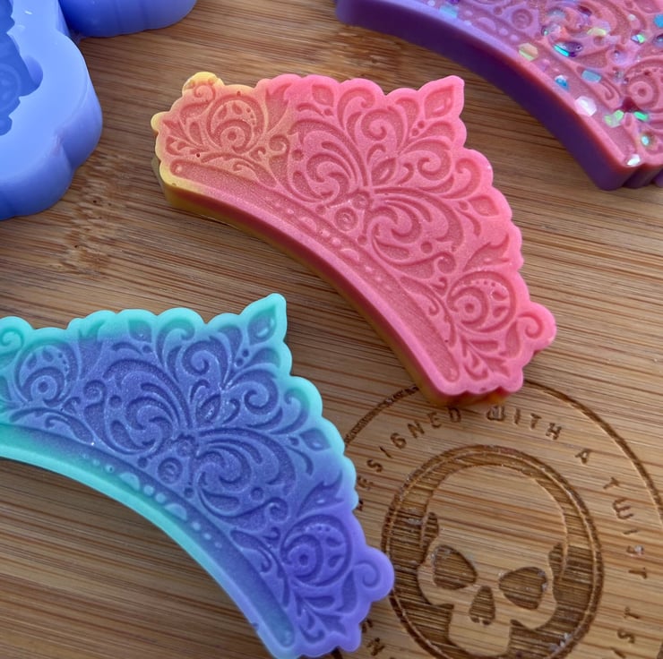 We use high quality platinum cure silicone that is food safe and can handle up to 230C (440F). We also de-gas our silicone before pouring the molds meaning they are great for use with wax, soap, resin, jesmonite, chocolate and for baking.