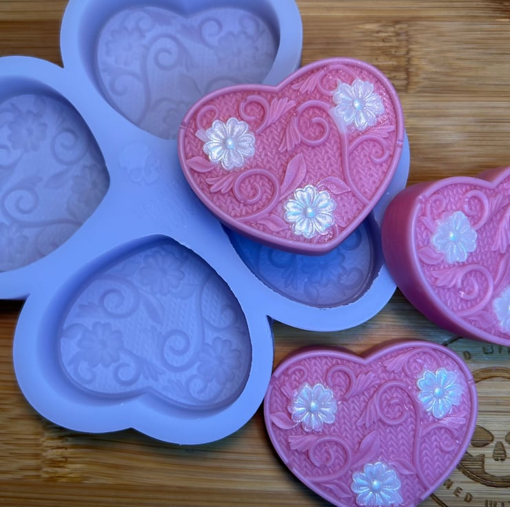 We use high quality platinum cure silicone that is food safe and can handle up to 230C (440F). We also de-gas our silicone before pouring the molds meaning they are great for use with wax, soap, resin, jesmonite, chocolate and for baking.