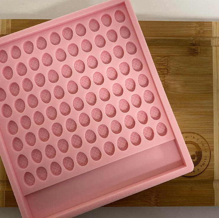 We use high quality platinum cure silicone that is food safe and can handle up to 230C (440F). We also de-gas our silicone before pouring the molds meaning they are great for use with wax, soap, resin, jesmonite, chocolate and for baking.