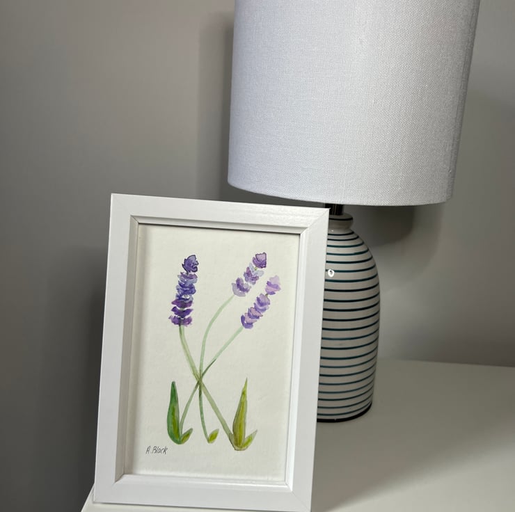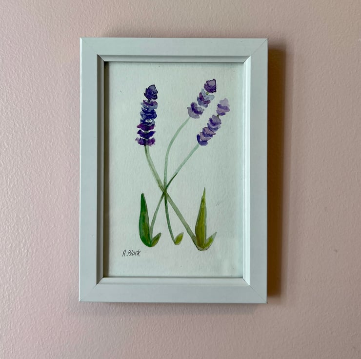 Lavender painted using watercolour- the option to frame or not is possible in variations.