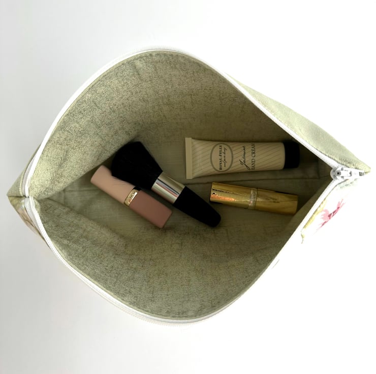 This handy large-sized cosmetic bag can be used to store lots of make up and could also be used as a pencil case, or a storage pouch for other items. The bag, with its pretty pastel fabrics, would make a lovely gift.