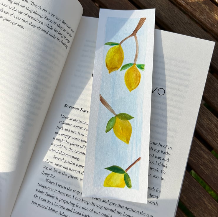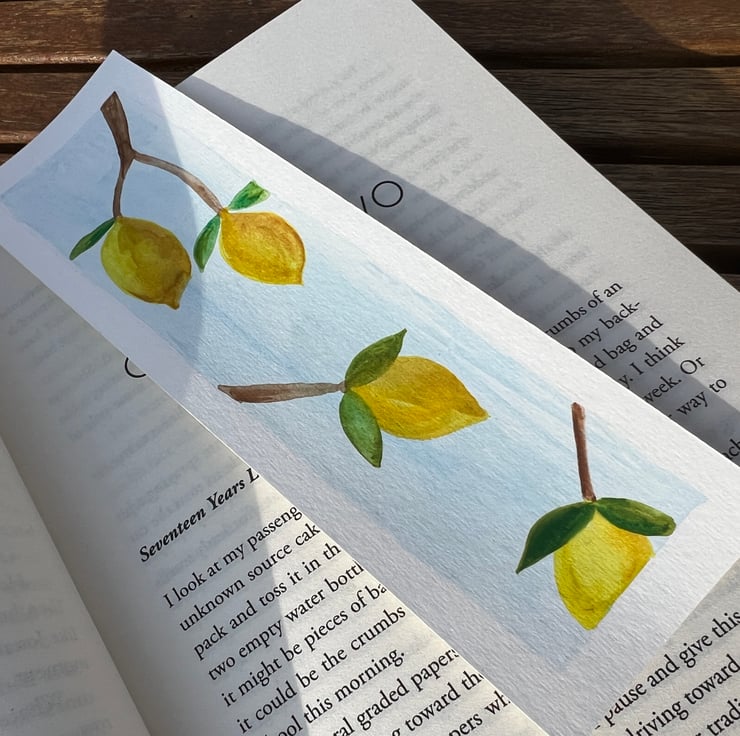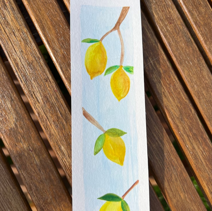 Make your reading more bright with a handmade bookmark using watercolours to create cute fruit.