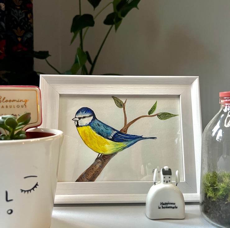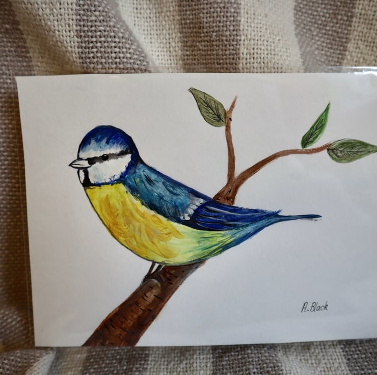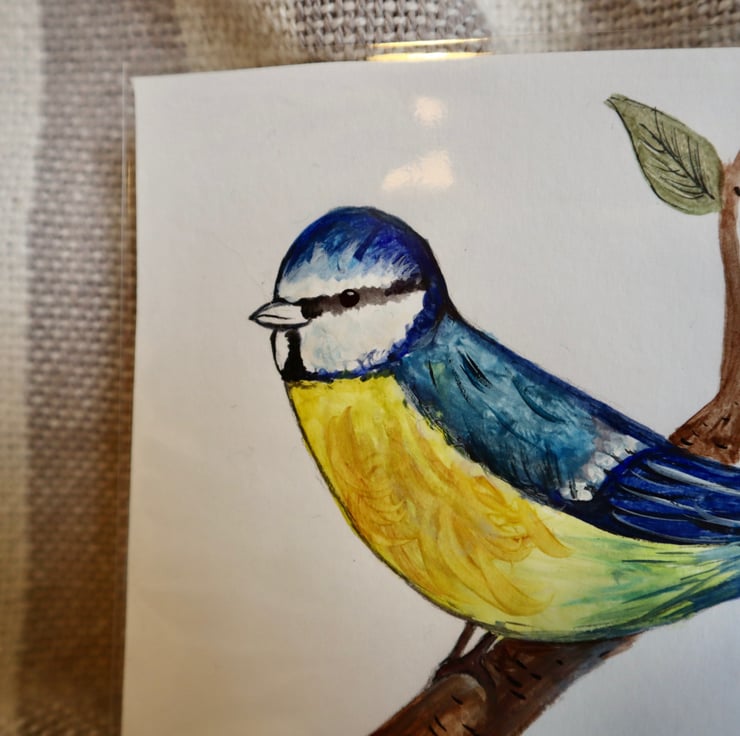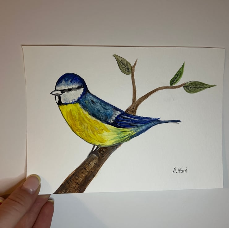 Bluetit painted using various watercolour on specific paper.