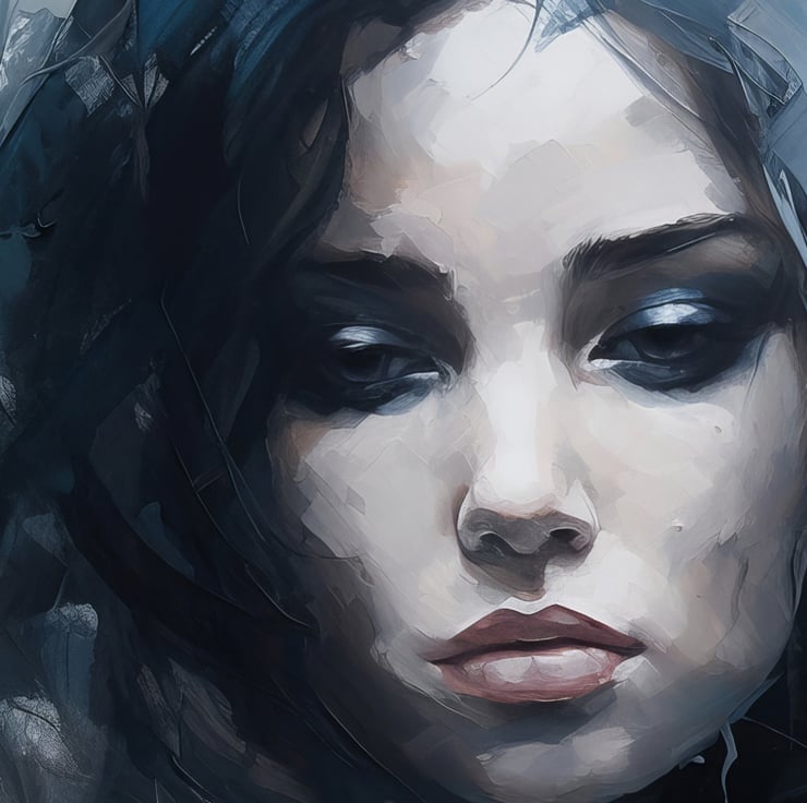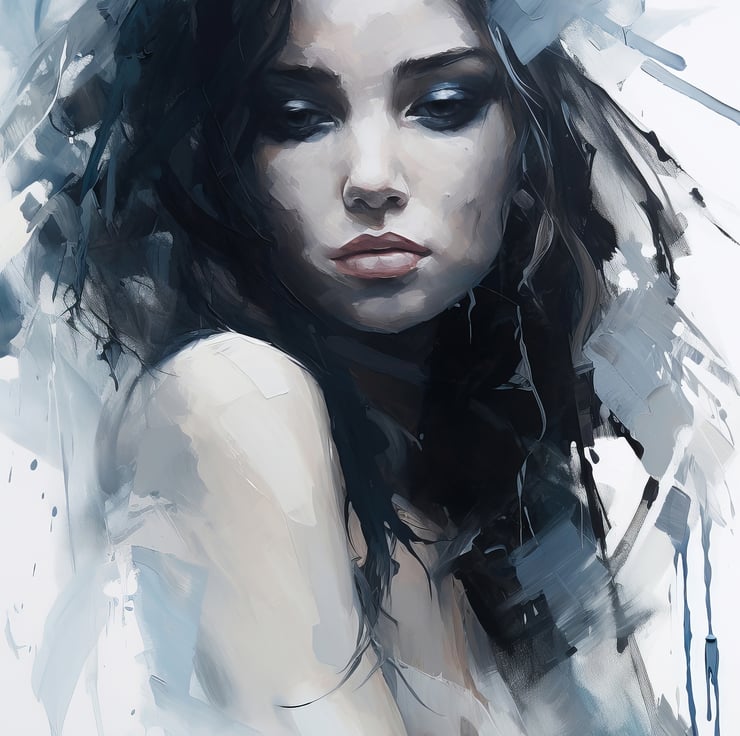 The "Serene Elegance" series aims to showcase the beauty and complexity of human emotions through art. Hang this oil painting print in your space and let the woman's gaze and the harmonious hues of blues create a serene atmosphere that invites contemplation and reflection. Whether you're an art enthusiast or simply appreciate the beauty of portraiture, this print is sure to be a timeless addition to your collection.