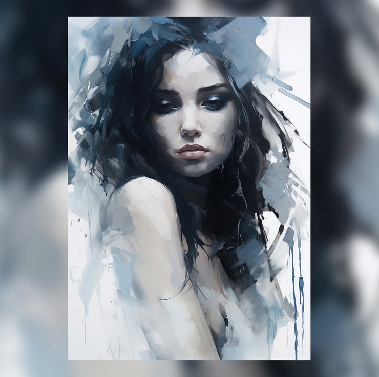 Experience the captivating allure of our "Serene Elegance" collection with this stunning oil painting print. The artwork beautifully captures the essence of a woman in soothing blues, portraying her with an air of timeless grace. The artist's skillful brushwork and use of color create a mesmerizing portrait that resonates with emotion and tranquility.