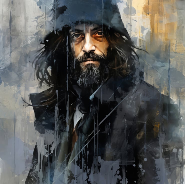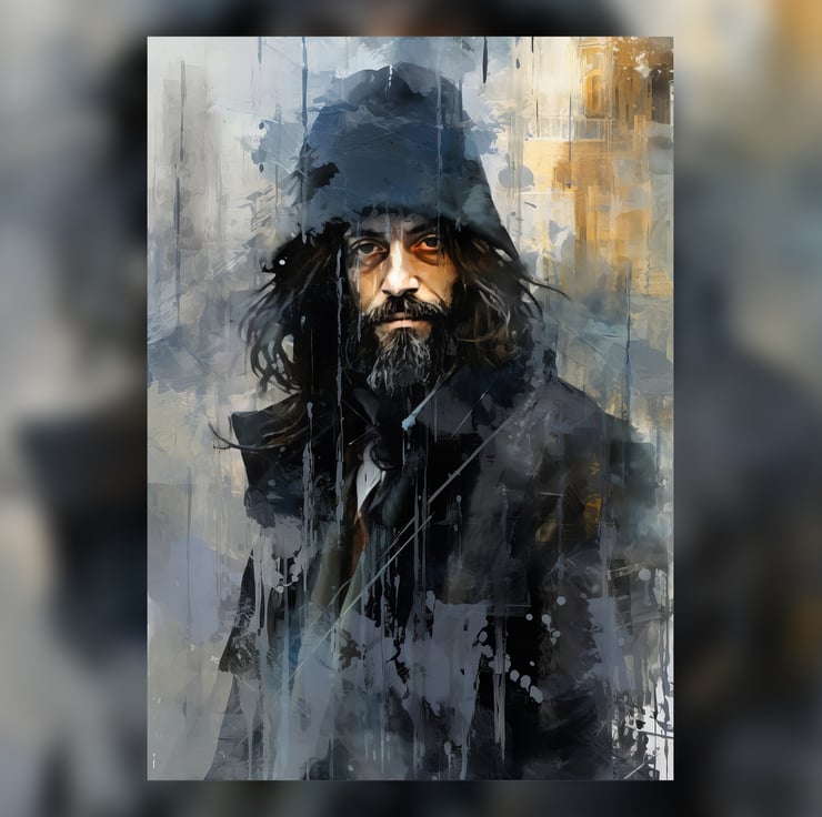 The vivid colors and meticulous shading lend depth and dimension to the subject, creating a portrait that goes beyond the canvas. The lush green coat contrasts elegantly against the subtle background, emphasizing the man's presence and charisma. Whether you're a connoisseur of art or simply captivated by intriguing portraits, this print promises to be a centerpiece that sparks conversations and imagination.