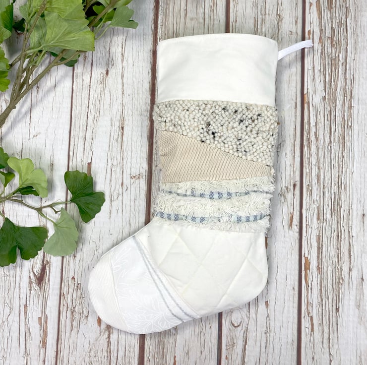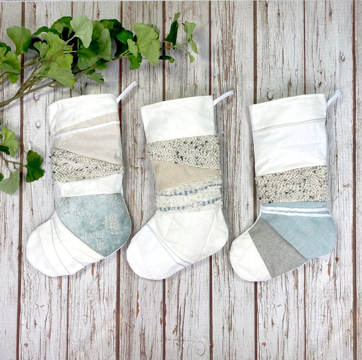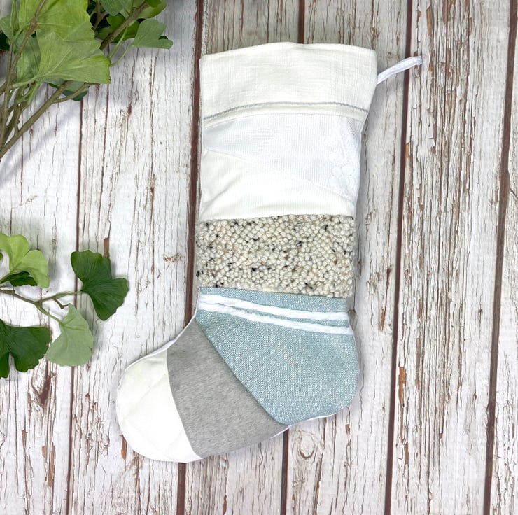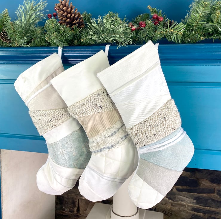 These are by co-ordinating white stocking range. These are my regular-sized Christmas Stockings assembled by myself using a special selection of fabrics that have been waiting to be used for many many years!