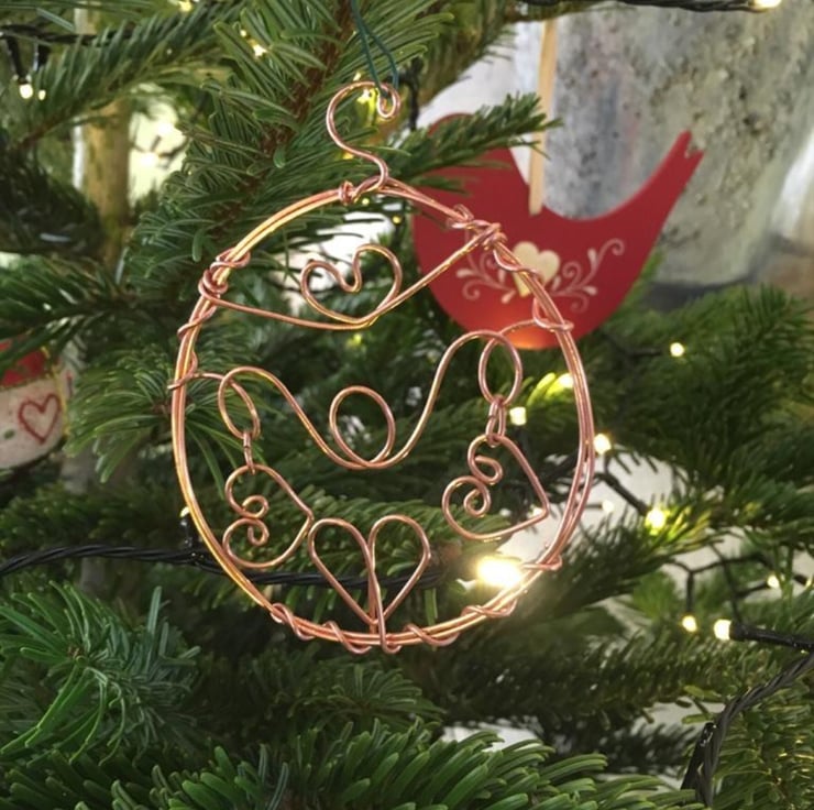 This copper wire Christmas decoration is a lovely addition to any tree - The colour of the copper pairs particularly well with the dark green of a Christmas tree.