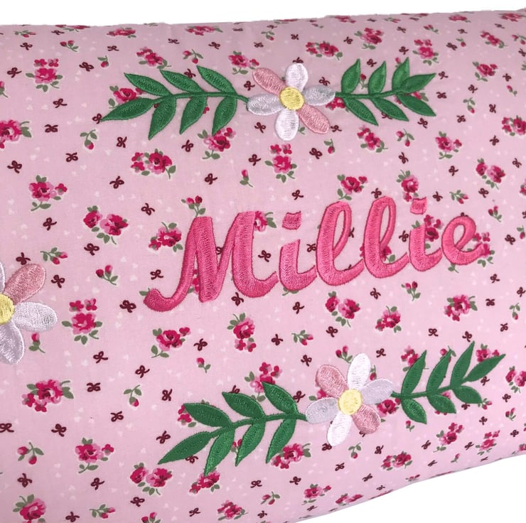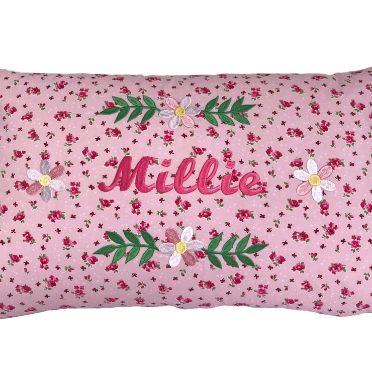New to my range of cushions is this gorgeous flower design, personalised name cushion, beautifully embroidered with any name.