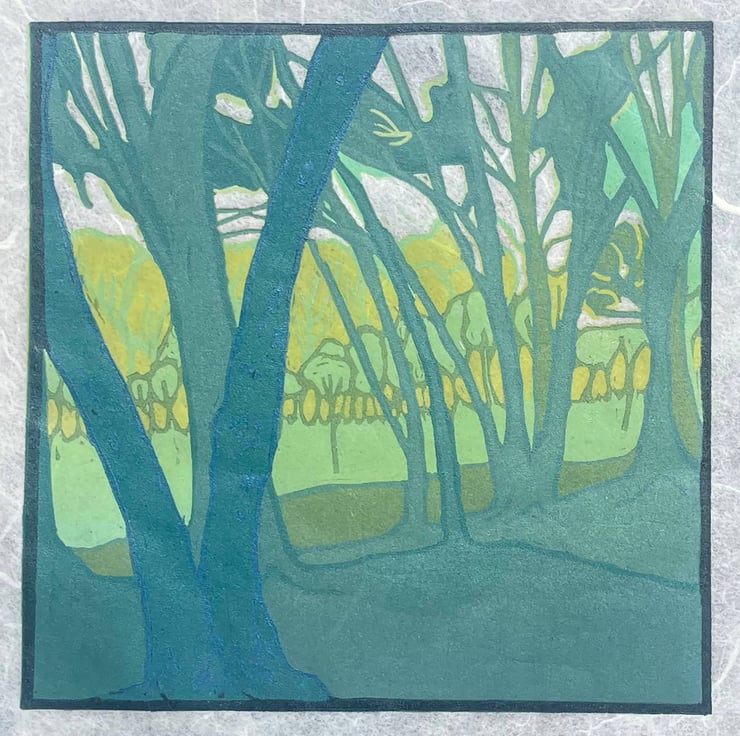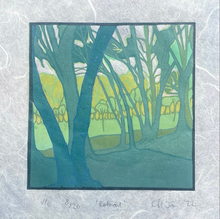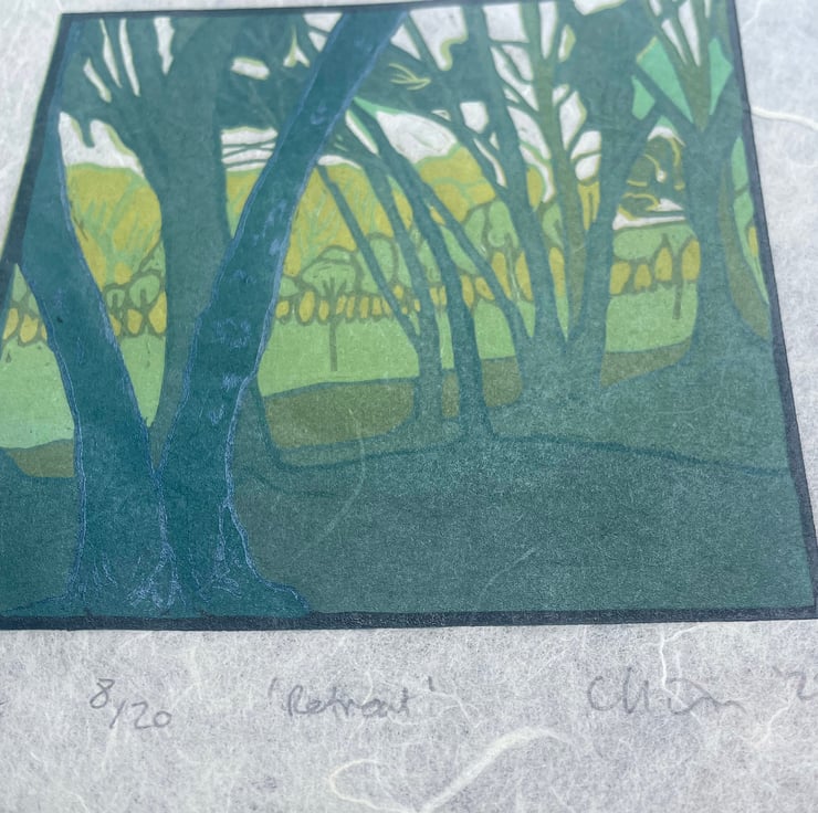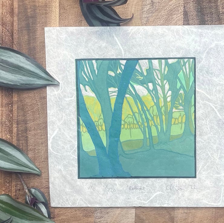 This unique Linocut Print by C Staunton is inspired by views of the woods in La Reole, France.