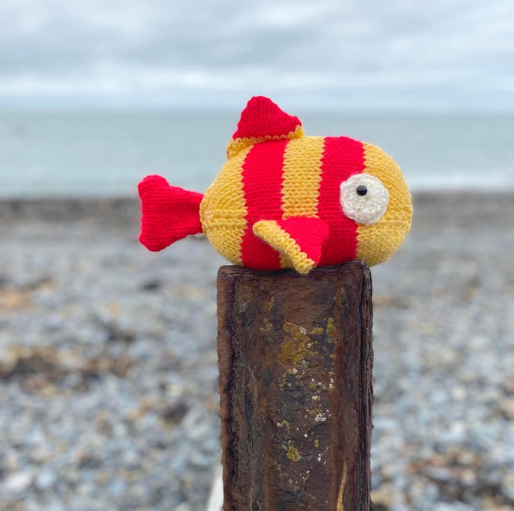 This is one suspicious fish! Knit a cute fish toy giving you the side-eye in chunky red and yellow yarn. This knitting pattern is simple to follow and gives you step-by-step instructions. Suitable for any knitter who has mastered the basics and is ready for a new challenge- you'll need to use increasing and decreasing to shape.