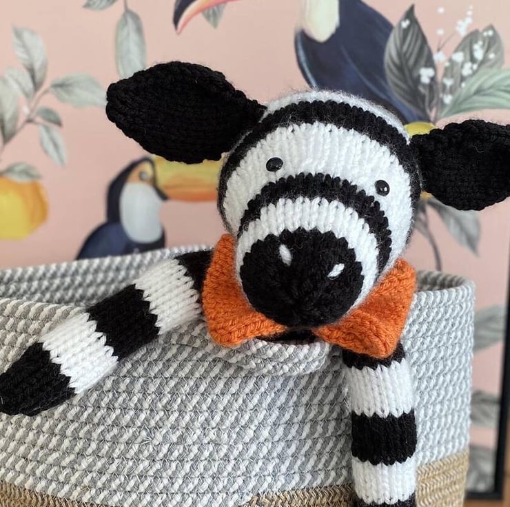 A cute bundle of our popular animal knitting patterns at a reduced price. Knit your very own set of cuddly zoo animal toys- a pink elephant, a zebra, and a no drama llama- with these colourful downloadable knitting patterns.
