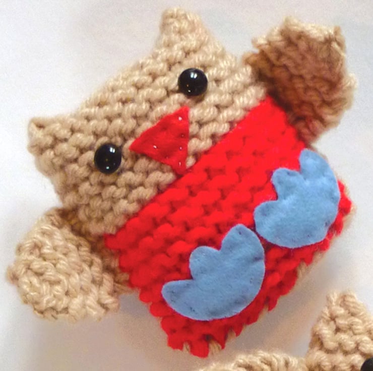 Perfect for children and beginner knitters to make, these little robins knit up fast- you can also add a little bell to each so that they chime when given a gentle shake.