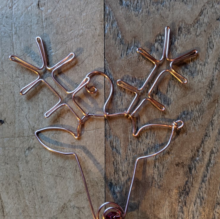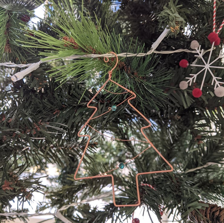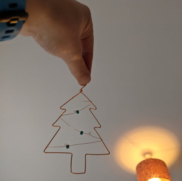 This copper wire Christmas decoration with bead accent is a perfect addition to any tree - The simple lines of the copper are accentuated with a bead or two (depending on the size and how it looks - each one is different as I choose the beads specific to the design)