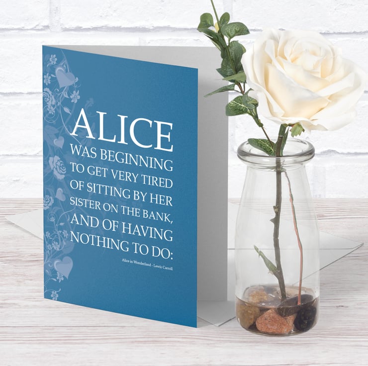 Alice in Wonderland Greetings Card Literary Gift - Alice Word Art Card