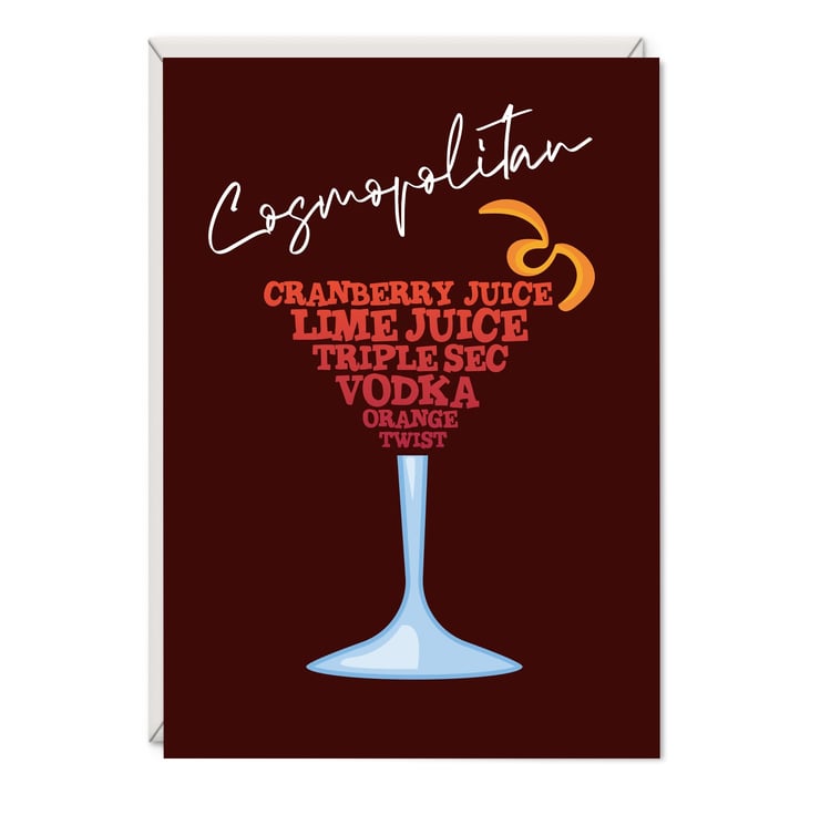 Cosmopolitan Cocktail Birthday Card for Mum, a friend or anyone! Perfect for a cocktail drinker to celebrate a birthday or occasion, or maybe you want to keep it for yourself, we are confident you will be happy with our greetings cards.