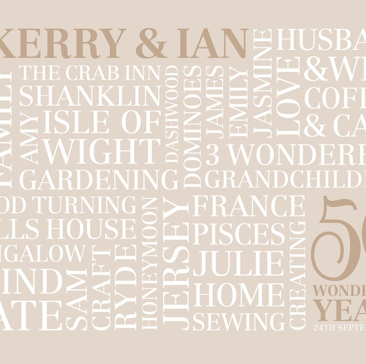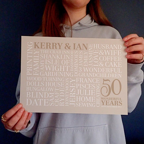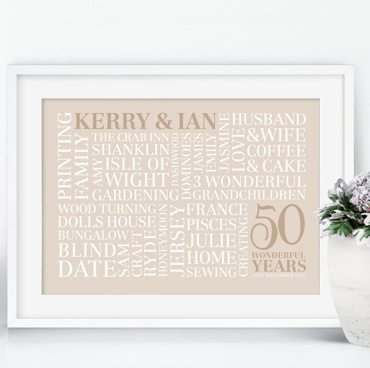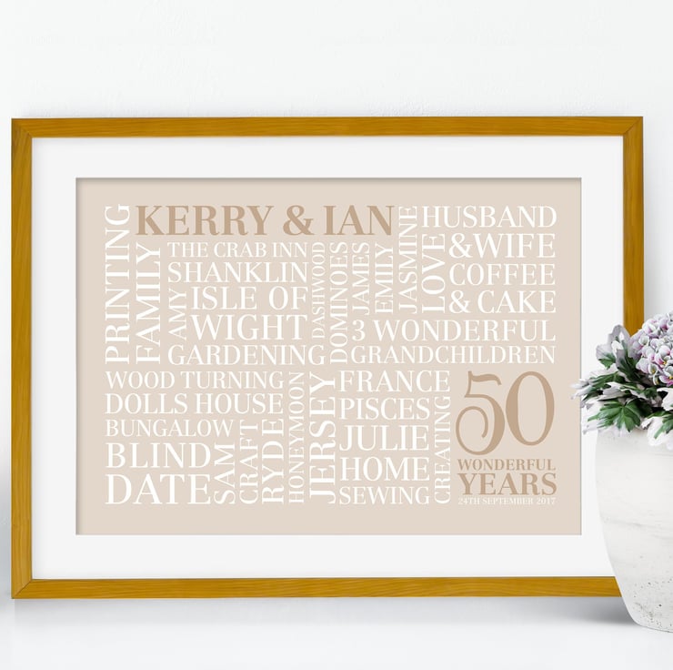 Personalised  Golden Anniversary Word Art - 50 years - AN502