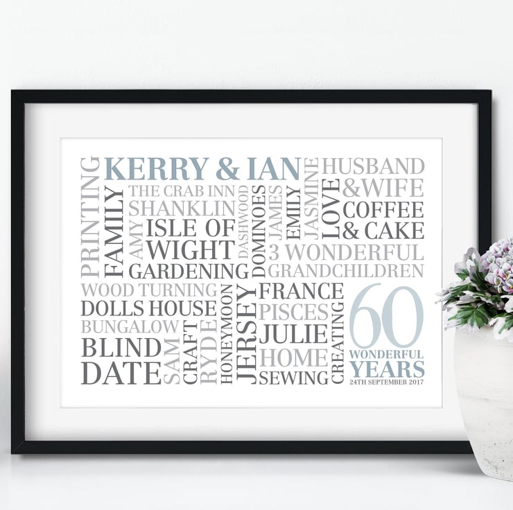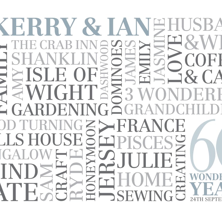 - About 30 personal words (If there are certain words that are particularly important please add a star next to them in your list and I will make these words the biggest and most noticeable.)