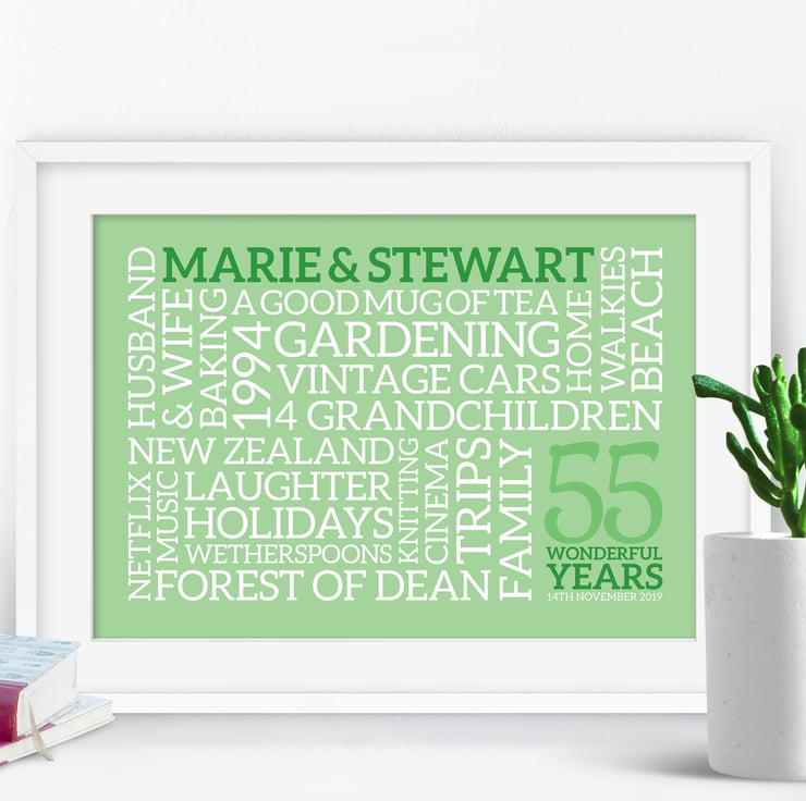 Personalised 55th Anniversary Word Art - Emerald - AN554