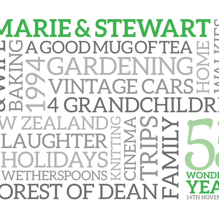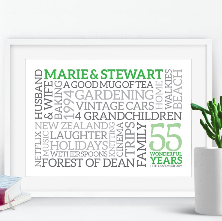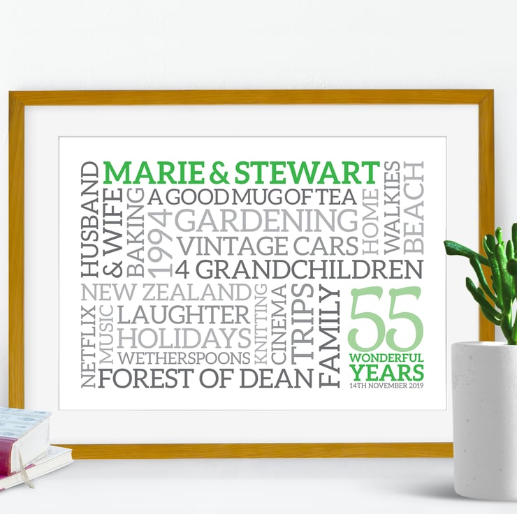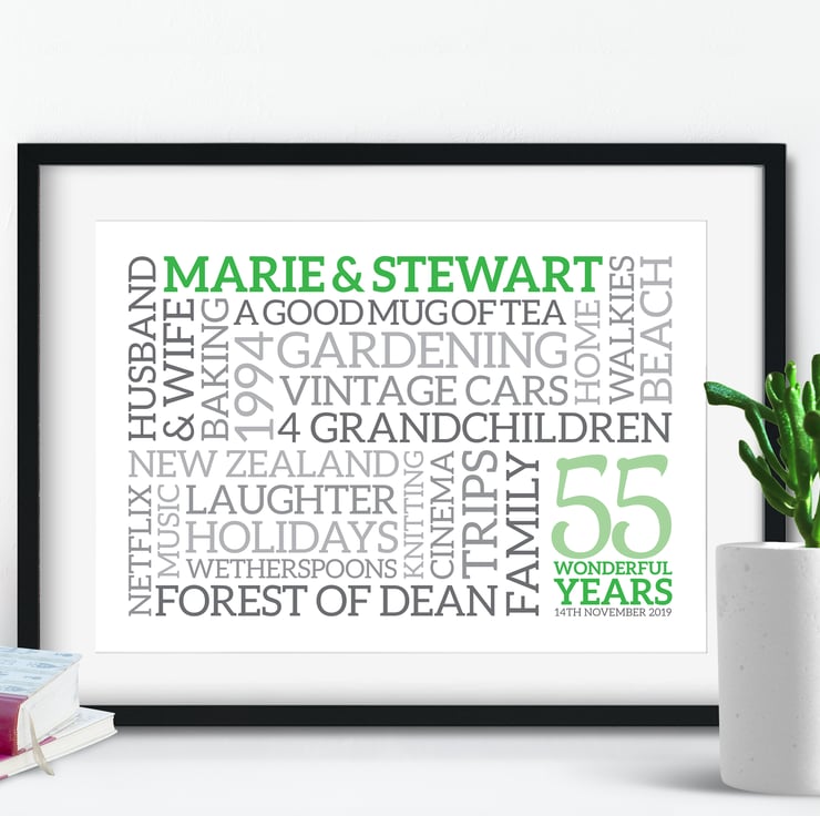 Personalised 55th Anniversary Word Art - Emerald - AN553