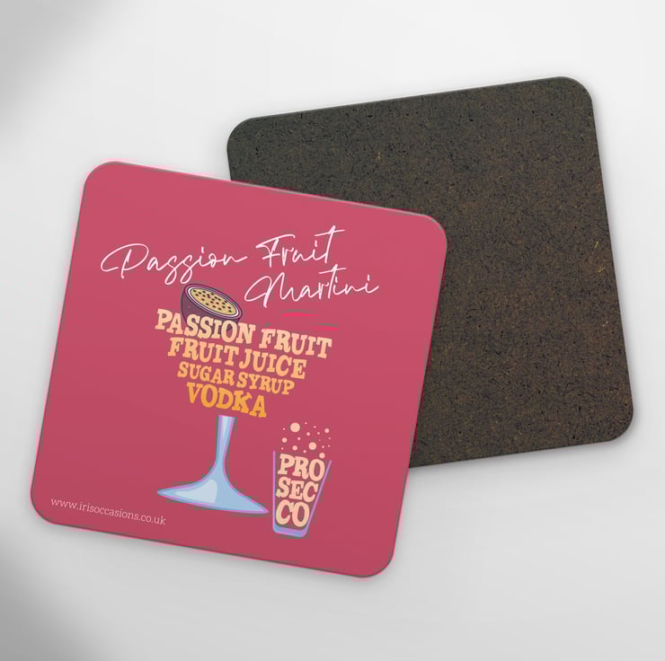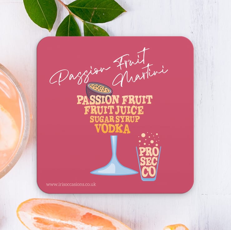Passion Fruit Martini Cocktail Word Art Coaster. Perfect gift for someone that likes a cocktail, or maybe you want to keep it for yourself.