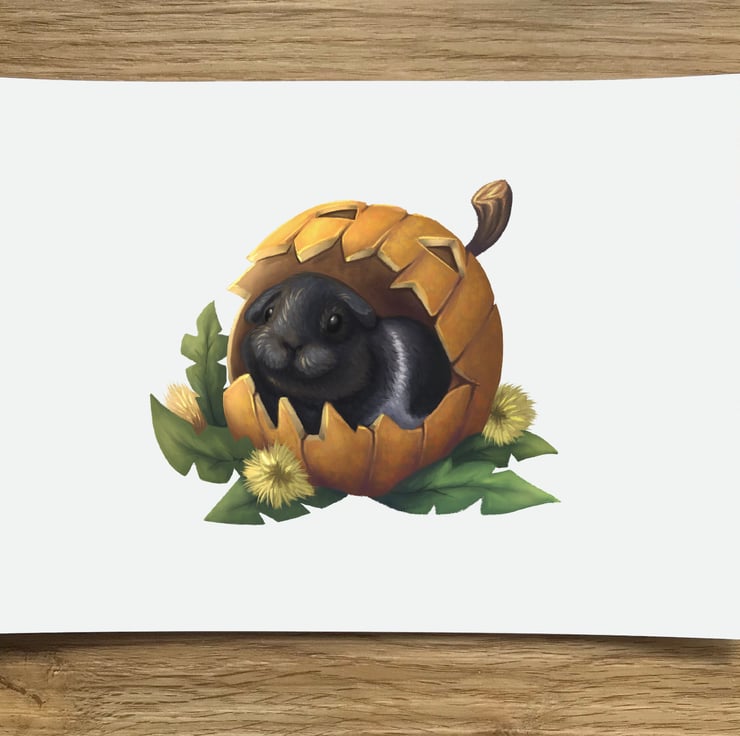 A spooky A6 guinea pig by DuffleCat Prints (Damian Case) post card. Back of card is blank for your message. 105 x 148 mm. 330gsm card stock.