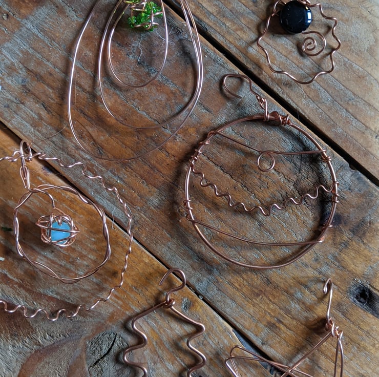 The copper wire catches the light wonderfully. This pack of 5 Christmas decorations with bead accent is a fantastic addition to any tree - The simple lines of the copper are accentuated with a bead or two (depending on the size and how it looks - each one is different as I choose the beads specific to the design)