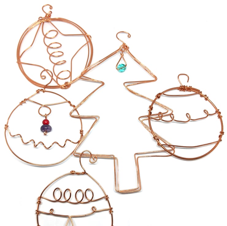 Pack of 5 Copper Wire Christmas Decorations - With Bead Accents